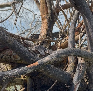 Was it there before the storm uprooted the tree? Or did it happen once the roots were pointing skyward, a leap into the wrong place ending badly. A deep dive gone wrong. Trapped forever in the tangle. Or was it placed there by someone, imperfect trophy rejected or shared, left for others to appreciate what didn’t make the cut for sale, for profit.